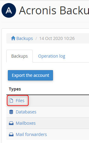 - Log in op het cPanel controlepaneel en open onder de hoofding BESTANDEN “Acronis Backup”