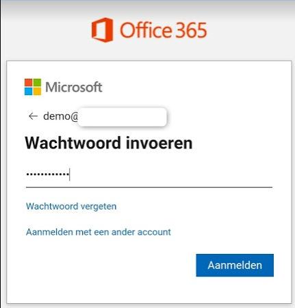 - Je zal nu naar de Microsoft Office 365 aanmeldpagina doorgestuurd worden, vul je wachtwoord in en klik op Aanmelden